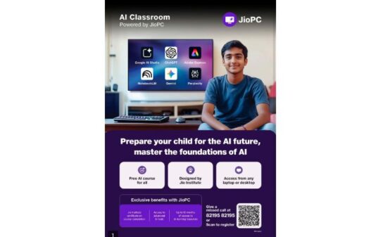 कंपनी के मुताबिक आर्टिफिशियल इंटेलिजेंस में देश को सुपरपावर बनाने के मिशन को आगे बढ़ाने के लिए जियोपीसी और जियो इंस्टीट्यूट मिलकर AI क्लासरूम शुरू कर रहे हैं। पर्सनल कंप्यूटर, डेस्कटॉप या लैपटॉप इस्तेमाल करने वाला कोई भी व्यक्ति इस कोर्स को कर सकता है। लेकिन सर्टिफिकेशन केवल जियोपीसी का इस्तेमाल कर कोर्स करने वालों को ही मिलेगा। अन्यों को कंप्लीशन बैज से नवाजा जाएगा। कोर्स को http://www.jio.com/ai-classroom के माध्यम से एक्सेस किया जा सकता है।