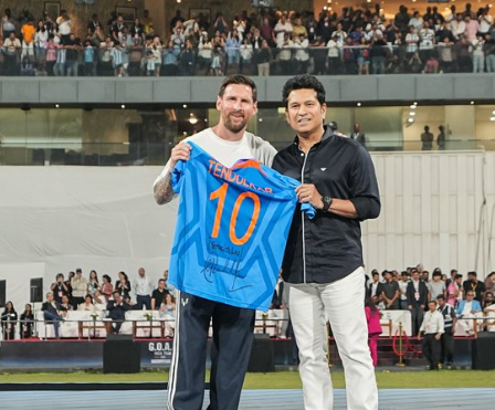 वानखेड़े स्टेडियम में क्रिकेट, फुटबॉल और संगीत का अनोखा संगम देखने को मिला। इस अवसर पर सचिन तेंदुलकर और लियोनल मेसी ने एक-दूसरे को उपहार भी दिए। सचिन ने मेसी को अपनी साइन की हुई भारतीय टीम की नंबर 10 जर्सी भेंट की, जबकि मेसी ने तेंदुलकर को एक फुटबॉल उपहार में दिया। मेसी से मुलाकात के बाद सचिन तेंदुलकर ने सोशल मीडिया पर एक पोस्ट साझा की। उन्होंने लिखा कि यह दिन लियोनल मेसी के लिए 10 में से 10 था। गौरतलब है कि मेसी भी अर्जेंटीना टीम के लिए नंबर 10 जर्सी पहनते हैं।