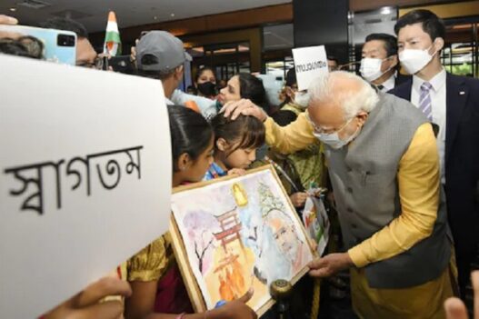 टोक्यो में होटल पहुँचने पर पीएम मोदी की मुलाकात एक जापानी बच्चे से हुई, बच्चे ने अपना परिचय हिंदी में दिया, जिसे सुनकर पीएम मोदी ने पूछा कि वाह! आपने हिंदी कहां से सीखी। आप इसे अच्छी तरह से जानते हैं। कुछ भारतीय बच्चों ने पीएम मोदी से आटोग्राफ भी लिया। बता दें कि पीएम मोदी आज सोमवार 23 मई से शुरू हो रहे अपने 2 दिवसीय दौरे के हिस्से के रूप में क्वाड लीडर्स समिट में भाग लेंगे।