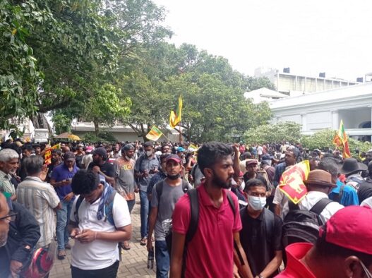 कोलंबो। श्रीलंका में जारी आर्थिक संकट के बीच जनता अब उग्र हो गई है। देश में तेल और बाकी जरूरत के सामान की कमी के बीच लोग एक बार फिर सड़कों पर हैं। प्रदर्शनकारियों की भीड़ ने शनिवार को राष्ट्रपति गोतबाया राजपक्षे के आवास का घेराव कर लिया।
