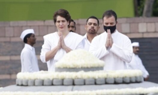 नई दिल्ली। कांग्रेस नेता राहुल गांधी और प्रियंका गांधी वाड्रा ने शनिवार को अपने पिता और भारत के पूर्व प्रधान मंत्री राजीव गांधी के 78वीं जयंती पर नई दिल्ली स्थित अनकी समाधि ‘वीर भूमि’ पर उन्हें श्रद्धांजलि दी। उनके साथ राबर्ट वाड्रा कांग्रेस के वरिष्ठ नेता मल्लिकार्जुन खड़गे, और सांसद केसी वेणुगोपाल भी मौजूद थे।