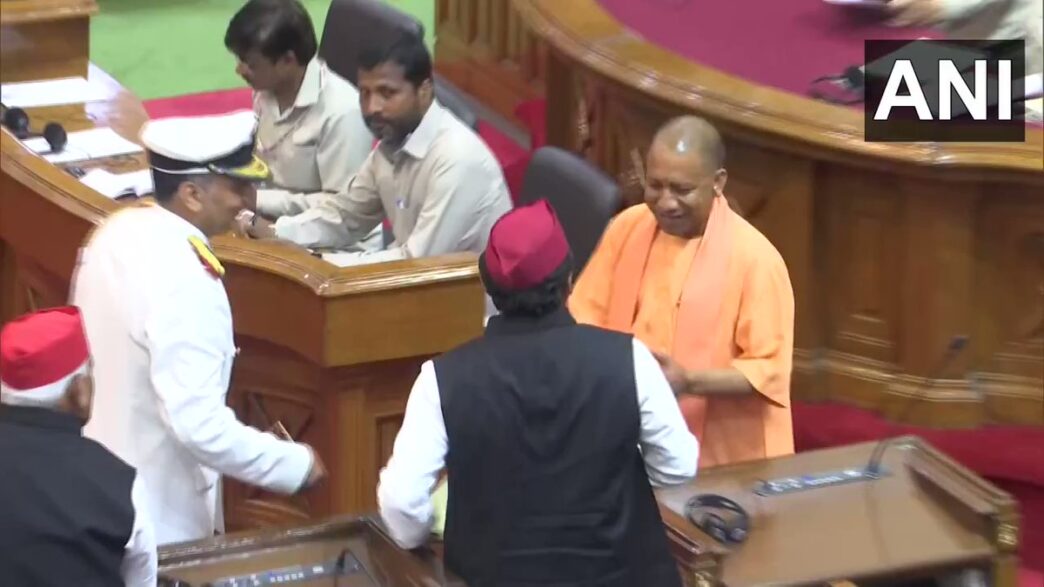 समाचार एजेंसी एएनआई द्वारा शेयर किए गए एक वीडियो में मुख्यमंत्री योगी आदित्यनाथ और अखिलेश यादव एक-दूसरे को बधाई देते हुए और सदन के पटल पर हाथ मिलाते हुए दिखाई दे रहे हैं। मुख्यमंत्री आगे बढ़ने से पहले अखिलश यादव को कंधे पर थपथपाते नजर आ रहे हैं।