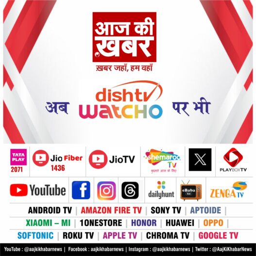 पत्रकरिता जगत में जाना माना नाम आज की खबर न्यूज चैनल पहले टाटा प्ले और जिओ के ओटीटी प्लेटफार्म के बाद डिश टीवी के OTT प्लेटफॉर्म watcho पर भी नजर आएगा…डिजिटल पत्रकारिता के क्षेत्र में अग्रणी भूमिका निभाने वाले आज की खबर चैनल को डिश टीवी के OTT प्लेटफॉर्म watcho ने स्थान दिया है…