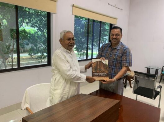 पटना। बिहार के मुख्यमंत्री नीतीश कुमार को विकास आयुक्त विवेक कुमार सिंह ने आज बिहार का पुरातात्विक एटलस पुस्तक भेंट की। श्री कुमार को मंगलवार को यहां एक, अणे मार्ग स्थित संकल्प में विकास आयुक्त विवेक कुमार सिंह ने बिहार विरासत विकास समिति, कला, संस्कृति एवं युवा विभाग, द्वारा प्रकाशित पुस्तक ‘बिहार का पुरातात्विक एटलस’ (अंग्रेजी और हिन्दी संस्करण) भेंट की। बिहार का पुरातात्विक एटलस के लेखक विकास आयुक्त विवेक कुमार सिंह हैं, जिसका सम्पादन एक सम्पादक मंडल द्वारा किया गया है।