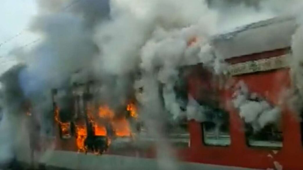 #WATCH | Fire breaks out in an empty train at Madhubani railway station in Bihar pic.twitter.com/Rps2N8gwKk