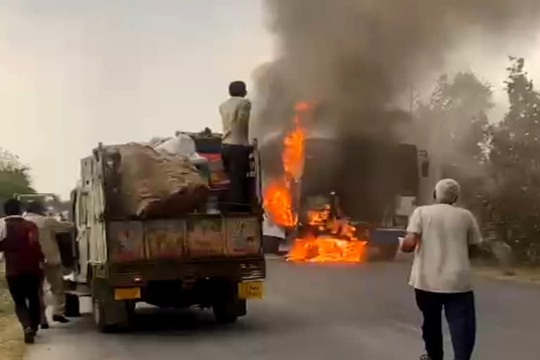 प्रत्यक्षदर्शियों के अनुसार, टक्कर होते ही बस में अचानक आग लग गई और चीख-पुकार मच गई। आसपास मौजूद लोग तुरंत मौके पर पहुंचे और घायलों को निकालने की कोशिश की।