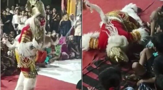 मैनपुरी। उत्तर प्रदेश के मैनपुरी में कल शनिवार को एक दु:खद हादसा हो गया। दरअसल, गणेश चतुर्थी कार्यक्रम के दौरान रात करीब आठ बजे हनुमानजी बने एक शख्स की अचानक दिल का दौरा पड़ने से मौत हो गई, जिसका विडियो अब सोशल मिडिया पर वायरल हो रहा है। मृतक की पहचान रवि शर्मा के रूप में हुई है।