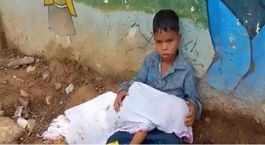 मृतक का पिता अपने दो वर्षीय बेटे के शव को उसके आठ साल के बड़े भाई गुलशन की गोद मे रखकर सड़क किनारे बैठाकर सस्ते शव वाहन की तलाश में निकल गया।