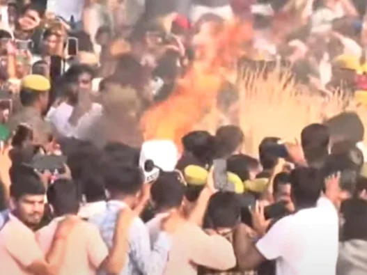 लखनऊ। सैफई मेला ग्राउंड में पूरे राजकीय सम्मान के साथ नेताजी मुलायम सिंह यादव का अंतिम संस्कार किया गया। नम आंखों से उनको अंतिम विदाई दी गई। इस दौरान बेटे अखिलेश ने उन्हें मुखाग्नि दी। वहीं मुलायम सिंह यादव के अंतिम संस्कार में शामिल होने के लिए बॉलीवुड के महानायक अमिताभ बच्चन अपने बेटे अभिषेक बच्चन के साथ पहुंचे।