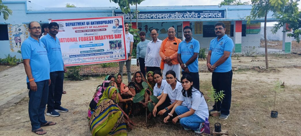 प्रयागराज। इलाहाबाद विश्वविद्यालय की माननीय कुलपति महोदया के कुशल मार्गदर्शन, सशक्त नेतृत्व और महती अभिप्रेरणा से मानवविज्ञान विभाग, इलाहाबाद विश्वविद्यालय ने आई. क्यू. ए. सी. प्रकोष्ठ और आउटरीच गतिविधि प्रकोष्ठ इलाहाबाद विश्वविद्यालय के संयुक्त तत्वावधान में “राष्ट्रीय वन शहीद दिवस (नेशनल फॉरेस्ट मार्टियर्स डे) के अवसर पर दिनाँक 11 सितंबर 2024 को आउटरीच गतिविधियों के तहत सोरांव तहसील की नारायणपुर ग्राम सभा में वृहत स्तर पर वृक्षारोपण का कार्यक्रम सम्पादित किया।