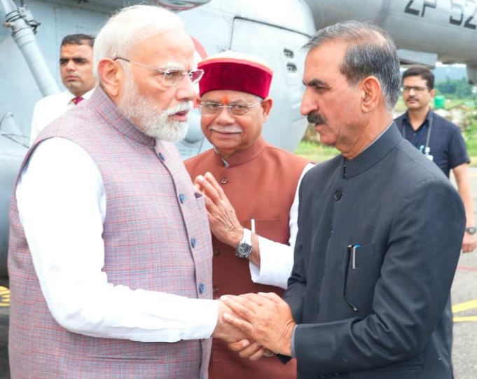 उत्तर भारत के कई राज्यों में बाढ़ और लगातार बारिश के कारण जनजीवन काफी प्रभावित हुआ है। इस बीच प्रधानमंत्री नरेंद्र मोदी आज हिमाचल प्रदेश पहुंचे और बाढ़ प्रभावित इलाकों का हवाई सर्वेक्षण किया। इसके साथ ही उन्होंने एनडीआरएफ और एसडीआरएफ के कर्मियों से मुलाकात कर राहत कार्यों का जायजा लिया।