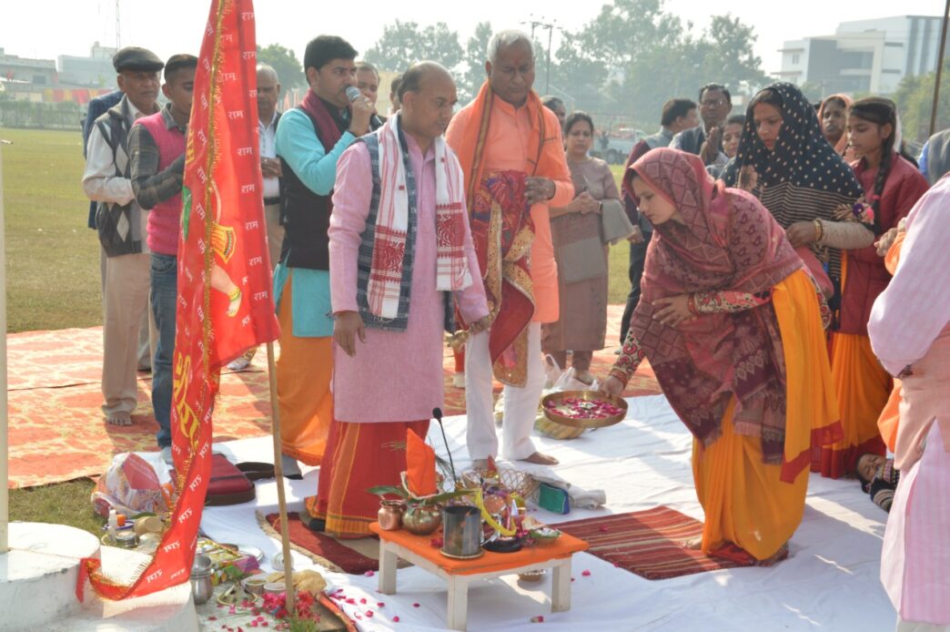 मंगलवार को मुख्य यजमान डा. नीरज बोरा ने कथा स्थल पर भूमि पूजन व धर्म ध्वजा की स्थापना के उपरान्त यह जानकारी दी। उन्होंने बताया कि भारतीय लोक शिक्षा परिषद के एकल अभियान के तत्त्वावधान में आयोजित श्रीराम कथा आगामी 25 दिसम्बर से 31 दिसम्बर तक प्रतिदिन पूर्वाह्न 11 से अपराह्न 2 बजे तक होगी। उन्होंने कहा कि श्रद्धालुओं को हल्दी अक्षत के साथ आमंत्रण देने का अभियान आज से आरम्भ किया जा रहा है।