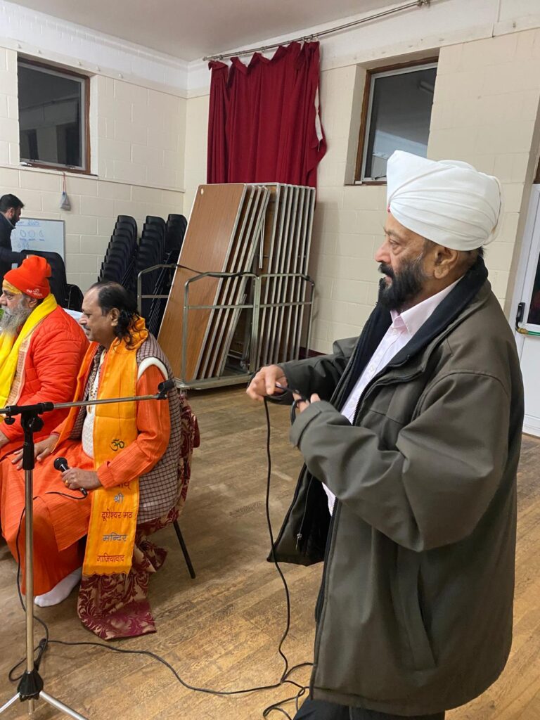 लंदनःसेंट एलबंस चर्च, अल्बर्ट रोड, इलफ़ोर्ड में स्थित सचखंड नानक धाम की शाखा में सत्संग का आयोजन किया गया। दास विजय बाबा व दास सतवंत सिंह द्वारा आयोजित इस सत्संग में सिद्धपीठ श्री दूधेश्वरनाथ मठ महादेव मंदिर के पीठाधीश्वर, जूना अखाड़ा के अंतरराष्ट्रीय प्रवक्ता एवं दिल्ली संत मंडल के अध्यक्ष श्रीमहंत नारायण गिरि महाराज मुख्य अतिथि तथा बाबा लाल मंदिर नसरतपुरा के महंत एवं दिल्ली संत महामंडल के उपाध्यक्ष पंडित महेश चंद वशिष्ठ विशिष्ट अतिथि रहे।