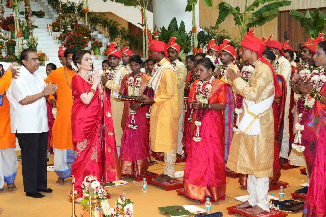 मुंबई। अनंत अंबानी और राधिका मर्चेंट के शादी की रस्मों की शुरुआत गरीब कन्याओं के सामूहिक विवाह से हुई। वंचित परिवारों से जुड़े 50 से अधिक जोड़े मुंबई से कोई 100 किलोमीटर दूर पालघर से आए थे। सामूहिक विवाह का आयोजन रिलायंस कॉरपोरेट पार्क में किया गया। इस सामूहिक विवाह में वर व वधू पक्ष के करीब 800 लोग शरीक हुए। इस मौके पर अंबानी परिवार ने ऐसे कई सामूहिक विवाह करवाने का संकल्प लिया। सामूहिक विवाह के अवसर पर नीता अंबानी व मुकेश अंबानी अपने परिवार के सदस्यों के साथ शामिल हुए। नव विवाहितों को अंबानी परिवार ने शुभकामनाएं दी।