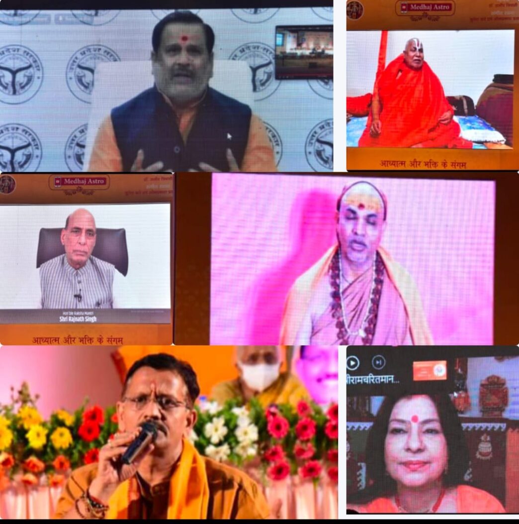 लखनऊ। देश के रक्षामंत्री और लखनऊ के सांसद राजनाथ सिंह ने कोरोना काल में डॉ. समीर त्रिपाठी के रामचरित मानस के अर्थ सहित गायन के यू-ट्यूब चैनल मेधज एस्ट्रो पर आने पर उनको बधाई दी है। साथ ही उन्होंने इस प्रयास को कोरोना काल में आस्था जगाने वाला और सकारात्मकता को बढ़ावा देने वाला बताया है। उन्होंने कहा है कि कोरोना की लड़ाई में धर्म और आध्यात्म से लोगों का जुड़ाव औषधि के रूप में काम करेगा। संक्रमितों को सही करने में भी सस्वर रामायण का पाठ वरदान साबित हो सकता है।