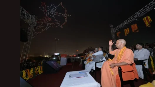 अयोध्या| मुख्यमंत्री योगी आदित्यनाथ ने दीपोत्सव में रविवार को रामलीलाओं का मंचन देखा। अयोध्या में पांच देशों (श्रीलंका, इंडोनेशिया, रूस, थाईलैंड, नेपाल) की रामलीलाओं का मंचन किया गया। इसके साथ ही मेजबान उत्तर प्रदेश समेत कई राज्यों के कलाकारों ने भी रामलीला का मंचन किया। मुख्यमंत्री योगी आदित्यनाथ ने मंच से विभिन्न प्रतियोगिता के विजेताओं को सम्मानित भी किया।