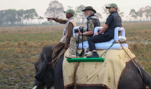 बता दें कि पीएम मोदी की एलिफेंट सफारी सुबह पांच बजकर पैंतालीस मिनट से शुरू हुई। यूनेस्को द्वारा घोषित विश्व धरोहर स्थल की अपनी पहली यात्रा के दौरान प्रधानमंत्री मोदी ने सबसे पहले उद्यान के ‘सेंट्रल कोहोरा रेंज’ के मिहिमुख क्षेत्र में हाथी की सवारी की और उसके बाद उसी रेंज के अंदर जीप सफारी की। उनके साथ उद्यान निदेशक सोनाली घोष और अन्य वरिष्ठ वन अधिकारी भी थे। प्रधानमंत्री राज्य के दो दिवसीय दौरे पर शुक्रवार शाम को काजीरंगा पहुंचे थे।